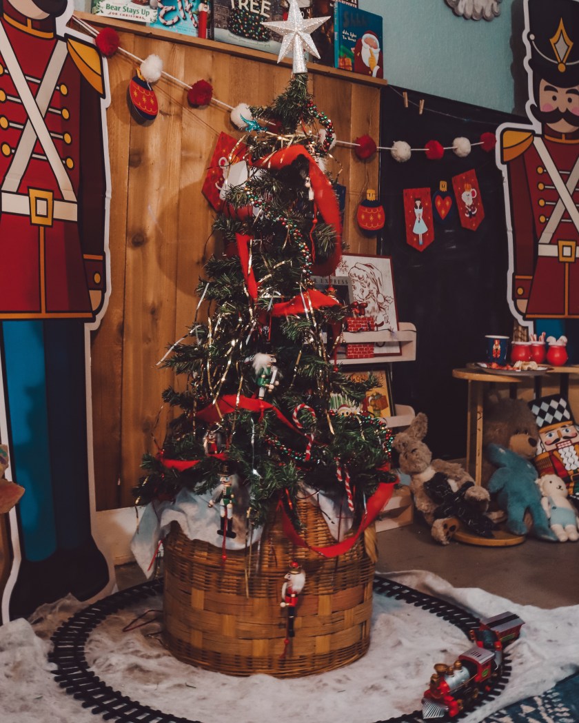 2. Setup A Storybook corner: Create a cozy corner with a comfortable pillows, cozy blankets, and classic Christmas storybooks. Include a traditional nutcracker, stuffed animals, or a vintage-style blanket for added whimsy.