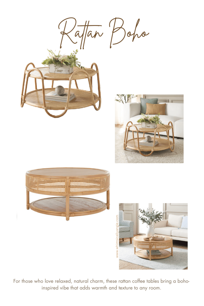 For a laid-back, bohemian vibe, rattan coffee tables bring natural texture and earthy appeal to your space. The lightweight material exudes a relaxed yet stylish atmosphere, perfect for creating a cozy, inviting living room. Ideal for those who love a carefree, nature-inspired aesthetic, rattan adds warmth and an effortlessly chic touch to any decor.