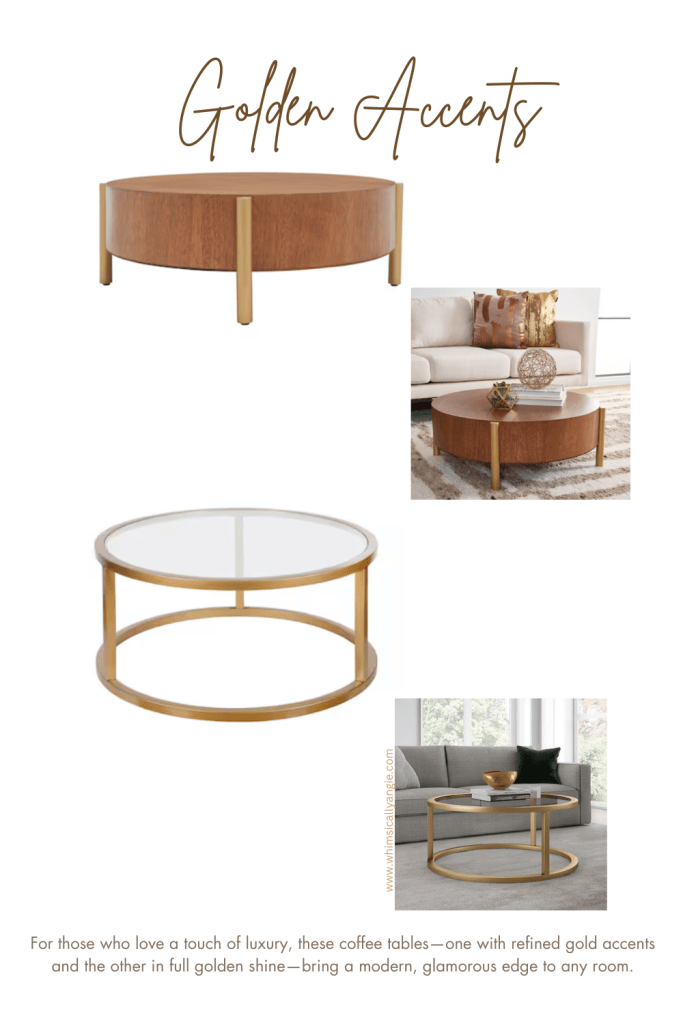 If you’re drawn to bold sophistication, gold-accented and all-gold coffee tables are the epitome of modern luxury. The subtle contrast of gold accents adds a touch of glamour without overwhelming the space, while an all-gold table makes a striking statement. Both styles elevate a room’s aesthetic, perfect for those who love a bit of shine in their decor.