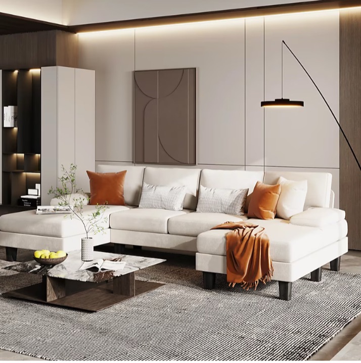 6. This L-shaped sofa is built to last with a strong hardwood frame and sturdy legs, supporting up to 1050 pounds. The thick, comfy cushions filled with high-elastic foam and PP cotton ensure lasting comfort and relaxation. Perfect for any space, its versatile color blends easily into your home, creating a cozy and inviting atmosphere.