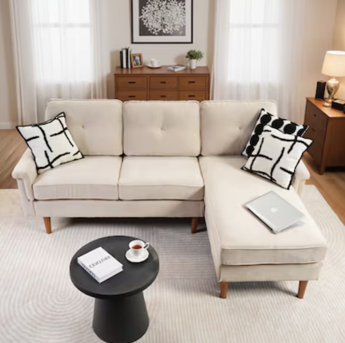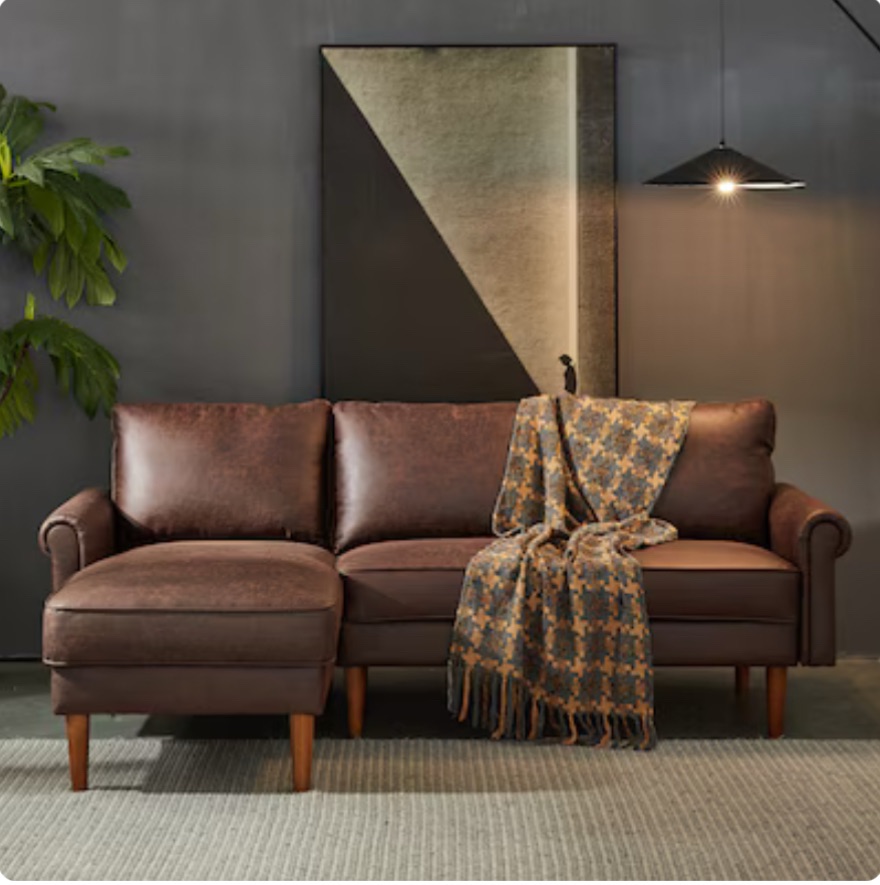8. This L-shaped sofa is a perfect fit for living rooms, apartments, or dorms, offering both comfort and durability in a compact size. With a solid wood frame, pocket coils, and serpentine springs, it’s built to last and features a luxurious suede faux leather fabric that’s soft and stylish. The spacious design, deep seating, and extendable chaise make it super comfy and perfect for lounging. Plus, it can support up to 800 lbs! Faux leather gives you a sleek, easy-to-clean look that’s more affordable than the real thing. It’s also durable, eco-friendly, and resists stains—making it great for busy households or pet owners.