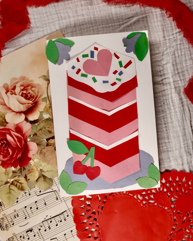 - Colored cardstock (red, pink, white, and any other colors you want for the cake layers)