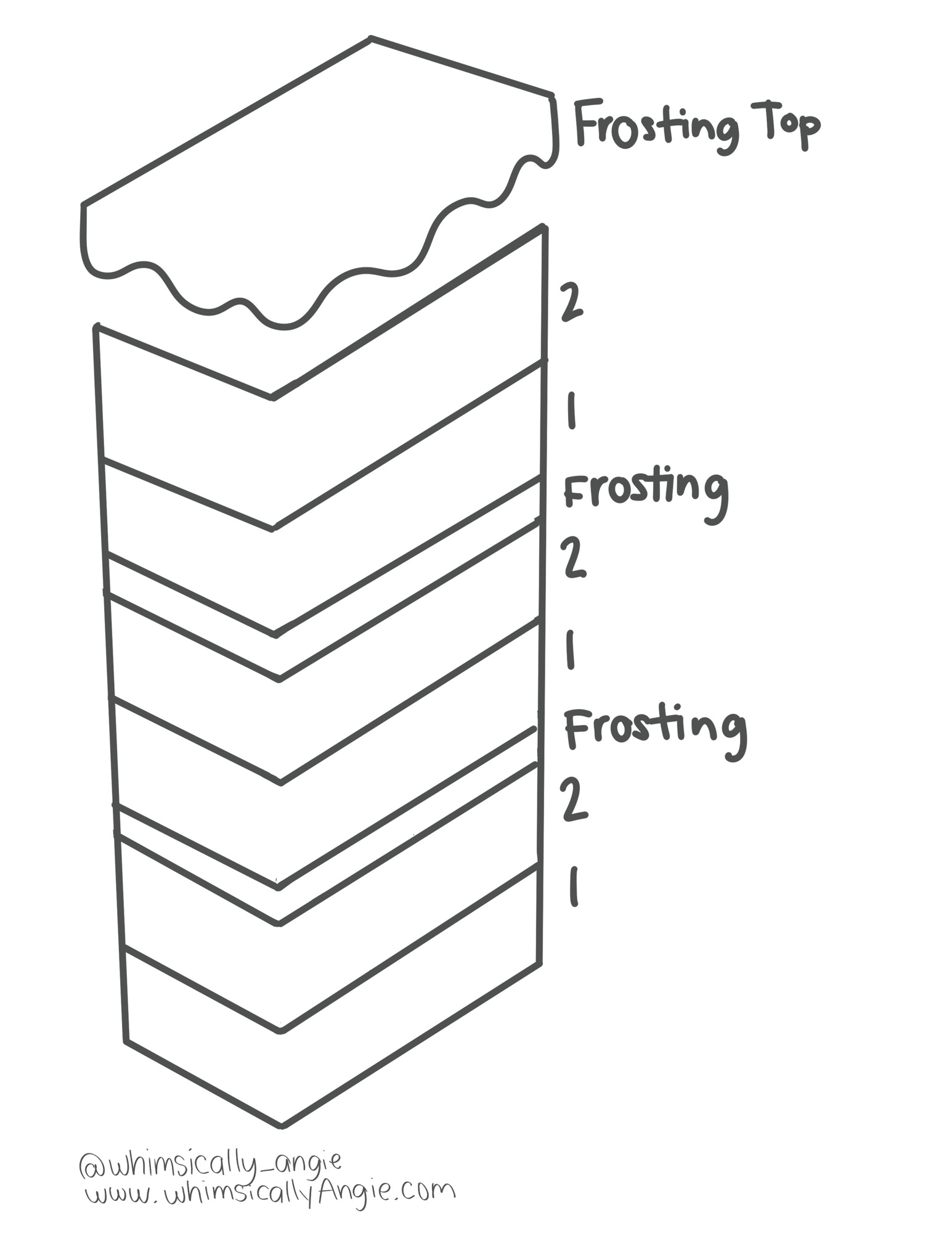 Once the cake layers are stacked, add the frosting layer. Add the cake topper (template provided), cut confetti out of paper, or add any embellishments you like.