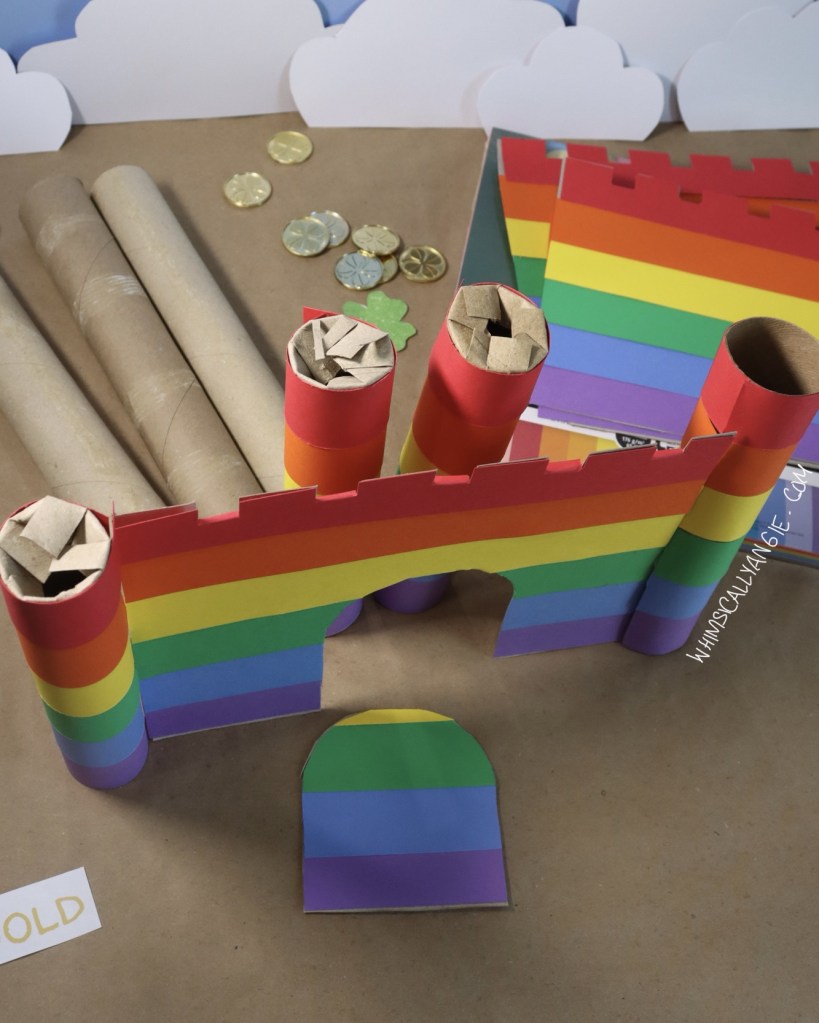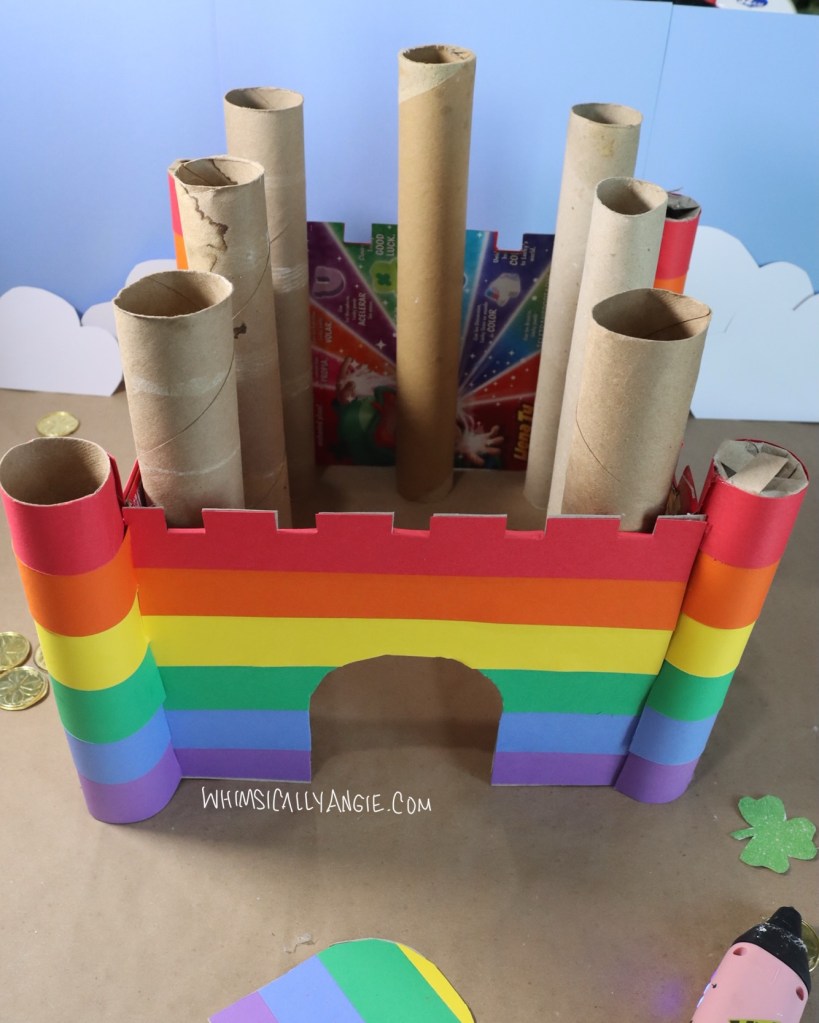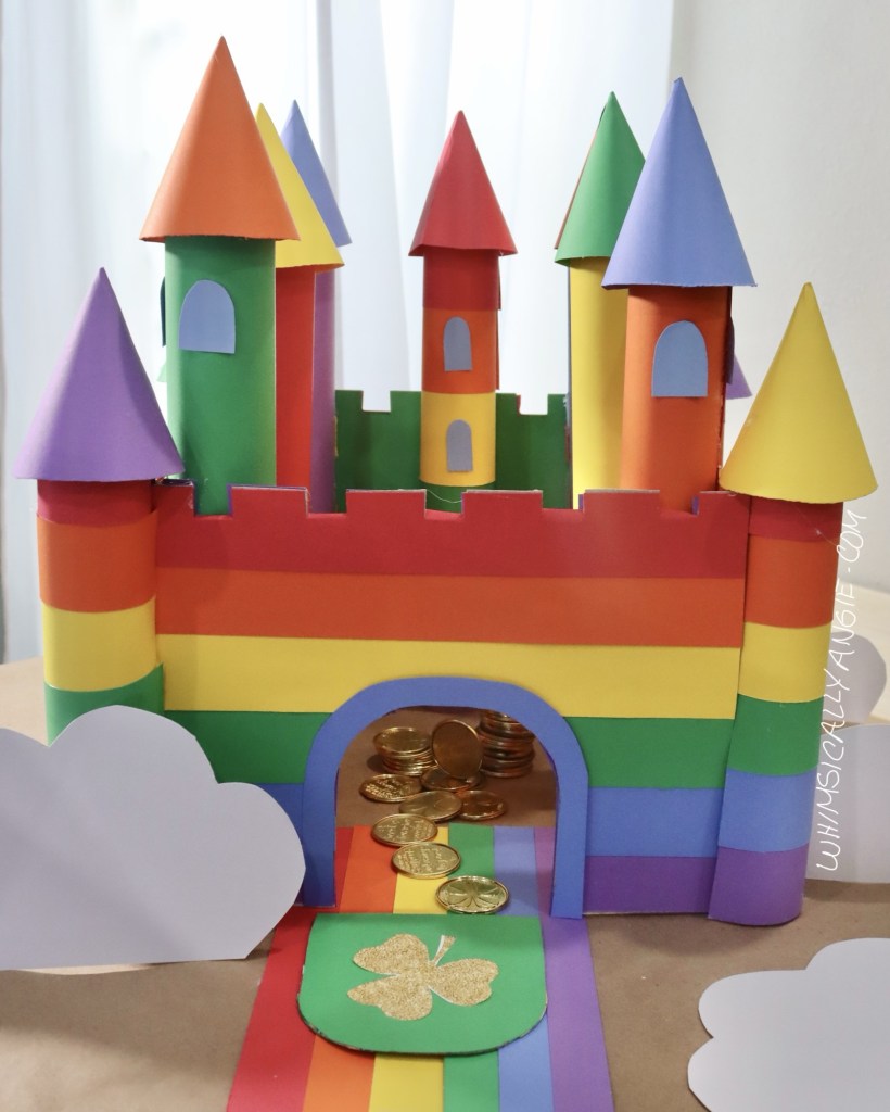 This rainbow castle is a great St. Patrick’s Day craft for kids, since rainbows go hand in hand with leprechauns and pots of gold.